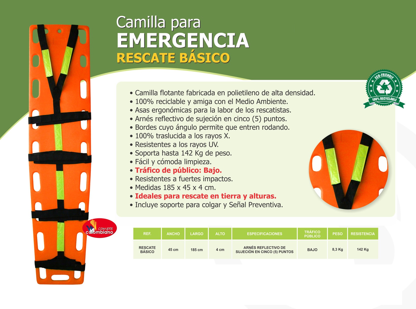 | Calcomanía Grande 10,20,30 | | Calcomanía Pequeña 5 | | Camilla Diván (Fija) | | Camilla Medio Espinal Plástica | | Camilla Plástica en Polietileno con Arnés y Aviso | | Camilla Plástica Pediátrica (Niño) | | Camilla Plegable | | Camilla Tipo Miller | | Chaleco Económico Brigadista | | Chaleco en Malla Talla Única | | Chaleco en Tela Talla Única | | Chaleco Salvavidas Adulto | | Chaleco Salvavida Niño | | Chaleco Tipo Riata Talla Única Refractivo | | Cilindro 5 libras – lamina CR 18 | | Cilindro 10 libras – lamina CR 18 | | Cilindro 20 libras – lamina CR 18 | | Cilindro 30 libras – lamina CR 18 | | Cilindro Cromado de 5 Lbs | | Cilindro Cromado de 10 Lbs | | Cilindro Cromado de 20 Lbs | | Cilindro Cromado de 30 Lbs | | Cilindro Nacional Acero Inoxidable de 10 Lbs | | Cilindro Nacional Acero Inoxidable de 20 Lbs | | Cilindro Nacional Acero Inoxidable de 30 Lbs | | Cinta Antideslizante Rollo x5m | | Cinta Antideslizante Rollo x10m | | Cinta de Marcación x22m (Negra- Amarilla y Amarilla) | | Cinta doble faz | | Cinta Peligro 100 Metros | | Cinta Peligro 500 Metros | | Combo de Extintor de 5 | | Combo de Extintor de 10 | | Combo de Extintor de 20 | | Combo de Extintor de 30 | | Compresas | | Cono (PAR) Plástico Para Kit De Carretera | | Cono PVC 20cm (unidad) | | Cono PVC 33cm (unidad) | | Cono PVC 45cm (unidad) | | Cono PVC 70cm (unidad) | | Cono PVC 90cm (unidad) | | Cono Retráctil 33cm (unidad) | | Cono Retráctil 45cm (unidad) |