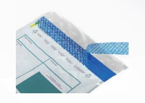 Cinta para sellar bolsas de plástico que una vez adherida, cuando se retira, deja parte del adhesivo sobre la bolsa siendo evidente la manipulación de la misma. Los rastros de impresiones o patrones se transfieren totalmente a los sustratos cuando se retira la cinta.