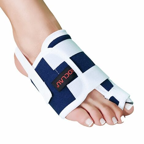 Órtesis en laminados acolchados y suaves, con cierres de contacto de alto agarre que permiten el ajuste y la graduación, para su mayor comodidad elástico posterior que lo mantiene en su sitio, con férula lateral para la alineación del primer dedo del pie. Izquierdo y derecho de acuerdo a la necesidad.